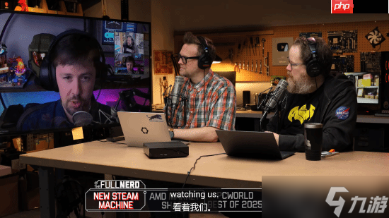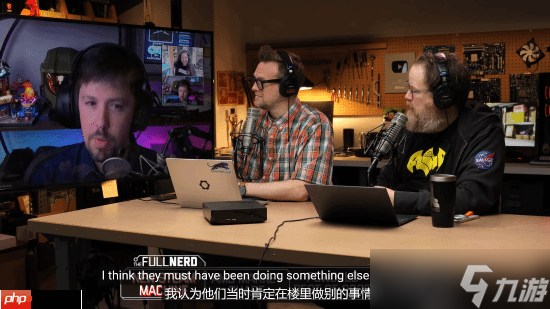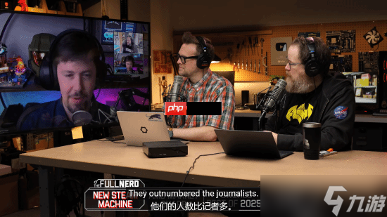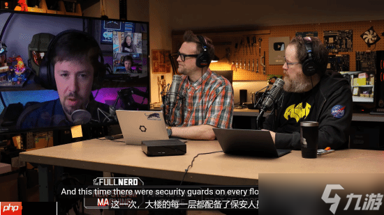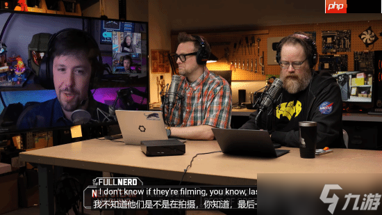 在一次播客节目中,他(如下图左侧大屏幕所示)向Gamers Nexus的编辑Steve Burke提问,是否也注意到了大量安保人员的存在。