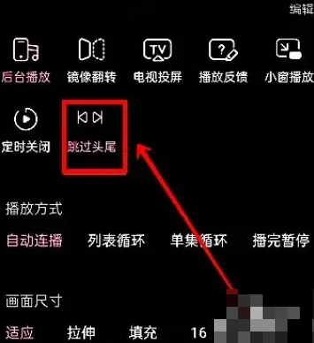 最后在弹出的菜单中,点击【跳过头尾】即可。