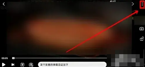 然后进入视频横屏播放界面,点击右上角的【三个点】图标。