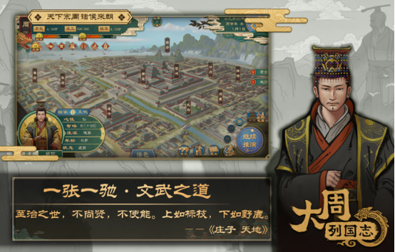 这是一款融合多个中国古代王朝背景的策略战争手游,涵盖从武王伐纣到秦并六国的重要历史节点。游戏独创双视角机制——都城视角专注内政建设,天下视角则用于宏观战略布局。引入百家争鸣文化系统,增强文明发展维度。在建立国家后,需合理规划水利设施、农业产出与人口增长,因地制宜地推动城市繁荣。每一步决策都将影响国家走向,真正实现运筹帷幄之中,决胜千里之外。