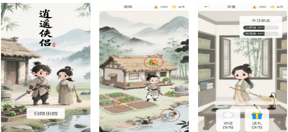 逍遥侠侣是一款主打休闲养老风格的高耐玩度玄幻手游。玩家所操控的主角原为一名修真者,后选择远离纷争,归隐山林。游戏中可与虚拟伴侣共同生活于简朴茅屋之中,体验田园生活的宁静与惬意。种植、垂钓以及佛系收集任务丰富日常玩法,NPC自由对话机制增强代入感。整体节奏舒缓,非常适合追求慢节奏修真体验的用户长期游玩。