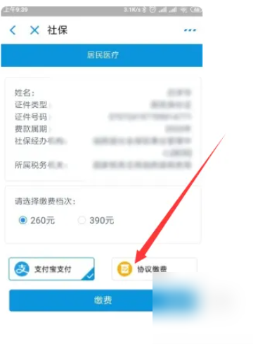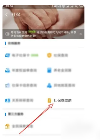 在弹出的社保选项界面中,点击选择社保费缴纳选项