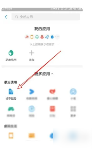 在弹出的设置窗口界面中,点击选择城市服务选项