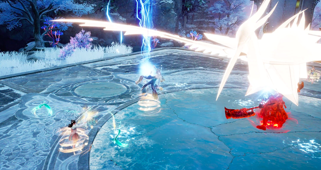 先来从画面和角色呈现上看起,画面采用专业虚拟引擎技术,配合cg动画,凭借着强大技术实力,打造出更加拟真的仙界环境,为玩家打造一个神仙秘境,从清幽的山谷之地到险恶的恶魔洞窟,无一不让玩家产生身临其境的感觉。通过cg动画,更好的演绎出了热血战斗的场面。而在boss造型的设计上,也加入了巨型boss,整体场面瞬间压迫感十足,感受巨物boss带来的视觉冲击。