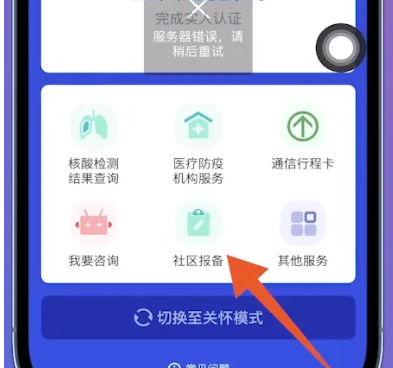 把本地的健康码小程序打开后,点击页面中的【社区报备】。
