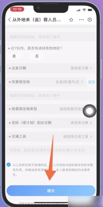 进入另一个页面之后,填写报备信息、个人信息,点击页面底部位置的【提交】即可。