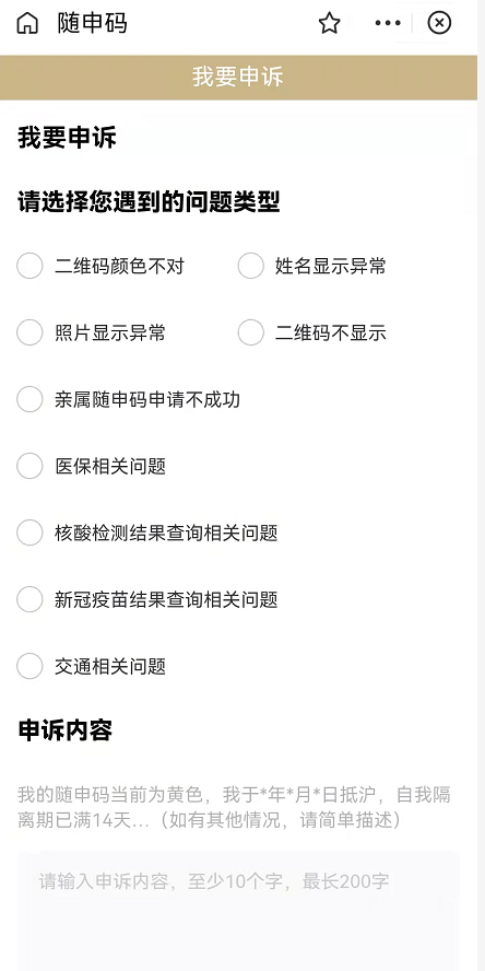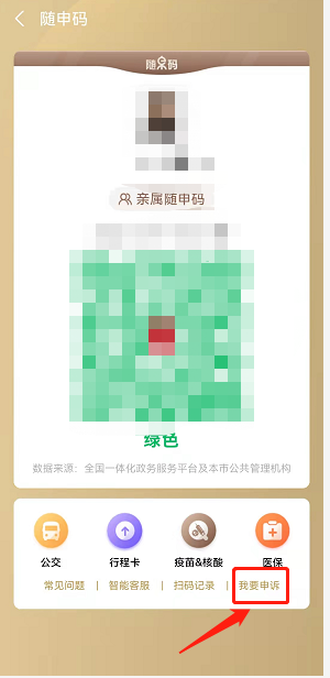 2、在健康码页面中,在下方找到【我要申诉】功能。