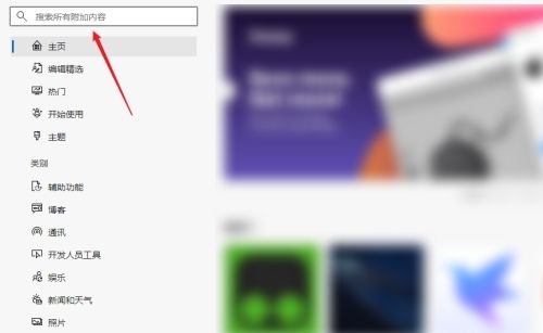 4、然后在左上角搜索框中输入需要扩展的程序名。