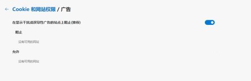5、最后找到新界面中的"在显示干扰或误导性广告的站点上阻止",将其右侧的开关按钮开启就可以了。