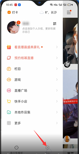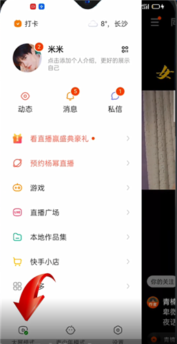 打开快手,点击左上角三条横杆,点击左下角的大屏模式,即可回到原来的模式,