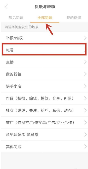 然后我们在里面的全部问题中,点击【账号】选项,如图所示。