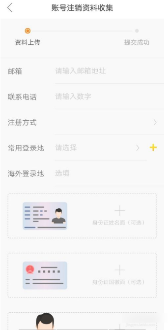 然后我们在里面上传注销快手账号的资料,我们依次输入和上传,如图所示。