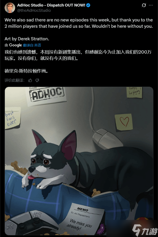今日凌晨,AdHoc Studio通过社交媒体宣布,在游戏发售接近一个月之际,《超英派遣中心》的累计销量现已突破200万份。为纪念这一里程碑,游戏美术总监Derek Stratton特别创作了一幅全新画作,描绘了玩家最喜爱的角色Beef。画面情绪略带感伤,因为近日更新的第七与第八章已是游戏的最终章节,目前暂无推出新内容的计划。