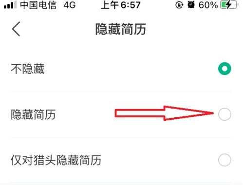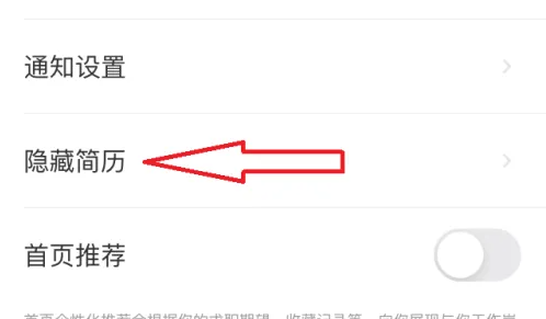 点击【隐藏简历】右侧的小圆圈