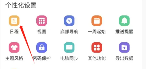 三,在日程设置,选择【同步系统日历日程】进入,即可开启指尖时光APP同步系统日历日程