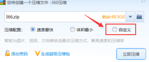 3、在打开的窗口中,点击"压缩配置"中的"自定义"选项。
