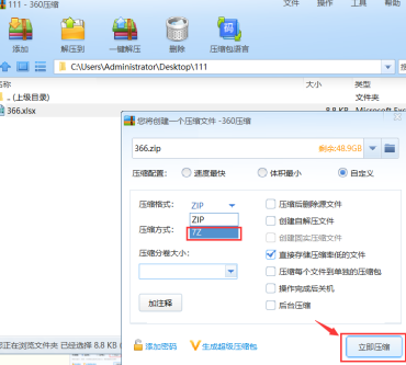 4、然后将"压缩格式"选择为"7Z",最后点击右下角的"立即压缩"按钮就可以了。