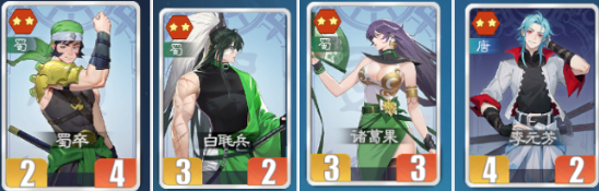这四张卡分别是蜀卒、白兵、诸葛果和李元芳,这四张二星单卡拥有增加相邻单位攻击生命、使己方任意一个单位攻击、生命增加、直接获得一张快速补给和获得先手连击攻击的效果在,这四张卡中可以去养李元芳,利用前面的加熟悉机制,可以将李元芳的属性拉到6-4,这个属性堪比6星大怪了,可以养出一只二星阶段无敌的卡牌去站场使用,之后完成了二星的过渡后就会来到三星,三星的时候游戏相当于是正式开始了,这个时候大家需要去拿三星的姜维,利用将为去摸补给,然后去摸张良、李斯和华阳夫人,需要将这些卡牌留下来,然后直接跳过四本去上五本。