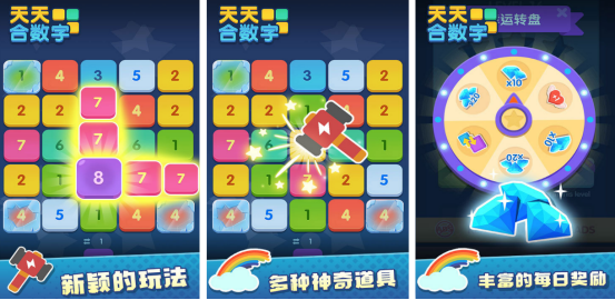 采用合成机制搭配明亮清新的视觉风格,由简洁的数字元素组成核心玩法。数字分布各不相同,关卡设计循序渐进,带来持续挑战感。玩家需观察周围环境,将相邻的两个相同数字合并,生成更高数值。每关配备锤子、刷新等辅助工具,帮助孩子顺利推进进度。