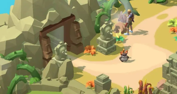 接着到下图处转动石像,向前走前往岛上最大的建筑点击,能拿到金币资源,前往潮汐岛,进入其中首先我们要移动箱子,然后向前走到达大石头处,会有飞行物,点击其中绿色的能拿到宝藏。