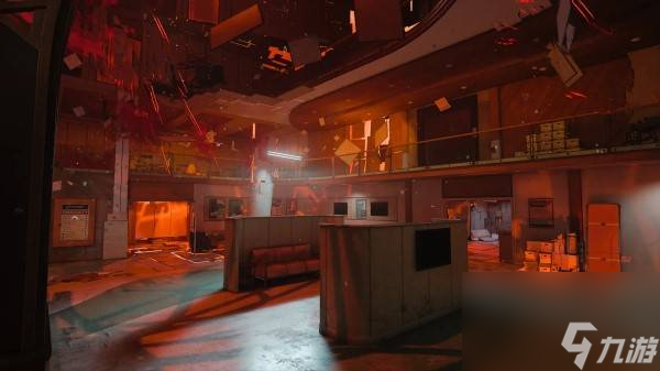地图一半正常,另一半扭曲成心理噩梦。漂浮的残骸肆意飞舞,猩红光芒从天花板与墙壁缝隙中迸射而出。