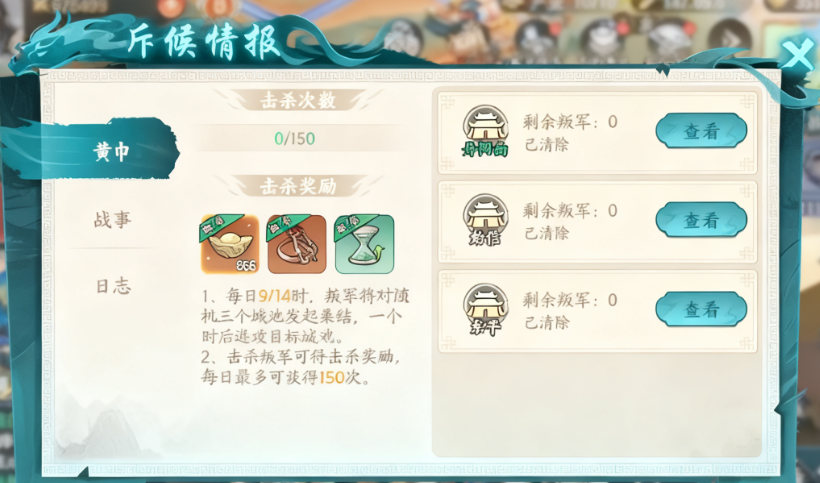 每天9点/14点斥候会收到情报信息,一个小时候后就会有3队黄巾叛军开始攻城,击退可以获得不少资源,黄巾叛军攻城在开服第四天。