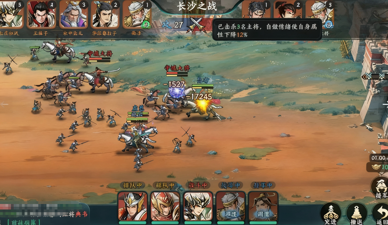斩杀敌将之后会叠加连斩的减益效果,会降低百分比属性。