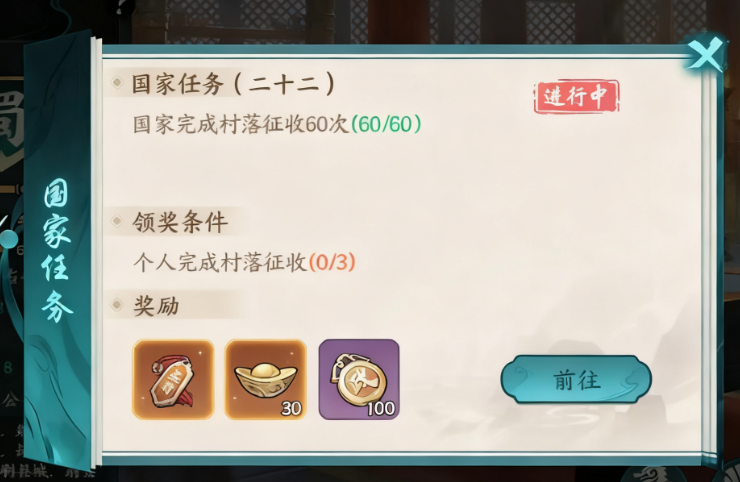 任务分为国家和个人,需要同时满足双方的条件才可以领取奖励。
