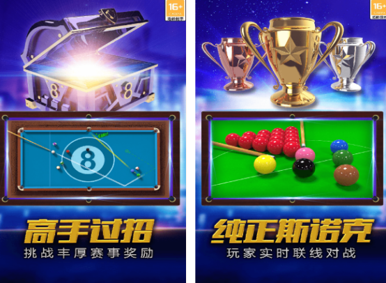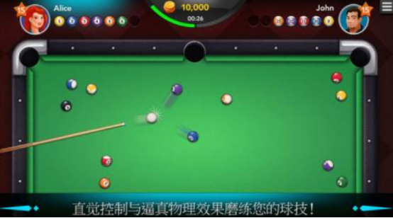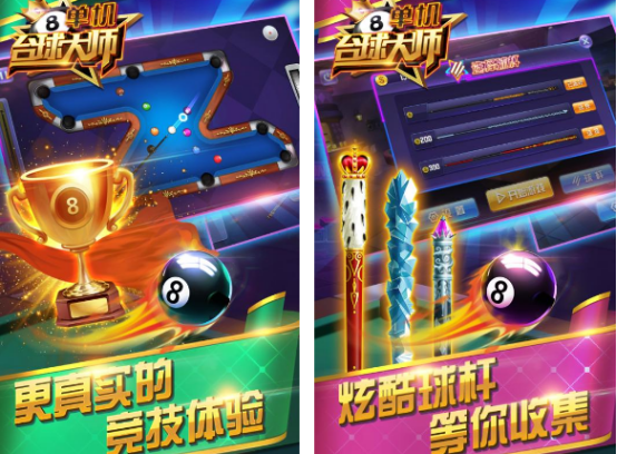 融合街机风格与现代竞技元素的桌球游戏,主打实时对战功能,可匹配来自各地的真实玩家。游戏采用精准的物理参数设定,配合顺滑的操作逻辑与炫丽的视觉特效,提升整体打击感。此外,还提供多种个性化定制球杆,助力玩家打造专属形象。
