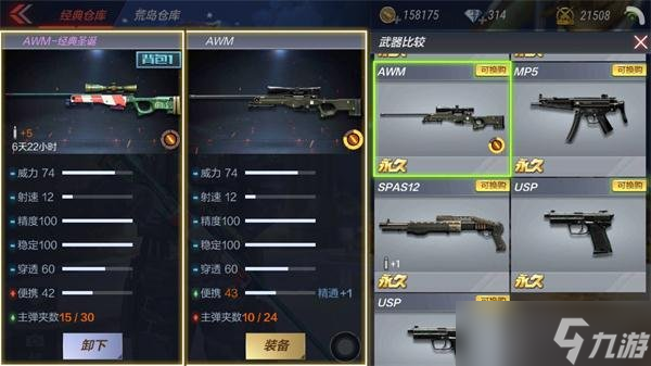 如图,AWM-圣诞和原始版AWM相比,前者主弹夹数高于后者,其他数据保持一致,即:前者续航时间更长,可在多种环境下纵横驰骋。