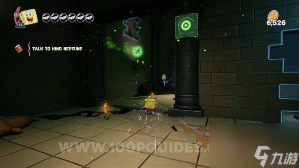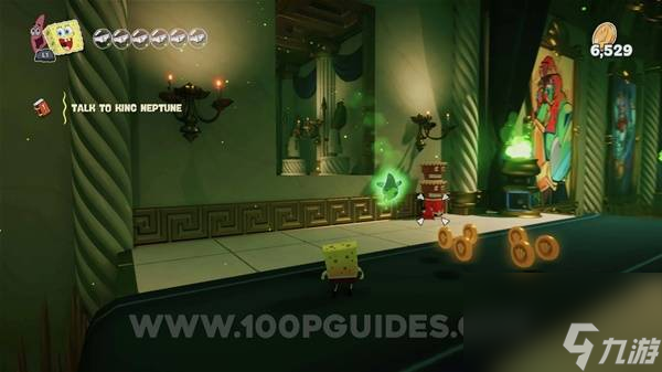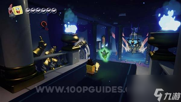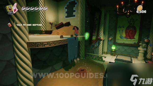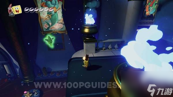 海王星宫殿——放下主大厅的大灯笼后,灯笼变绿,使用走廊尽头的弹跳板回到你刚才进入的路径。这里,转身向左看,找到一个可以用气泡激活的开关。这会打开你右侧的肖像,那里有电视。