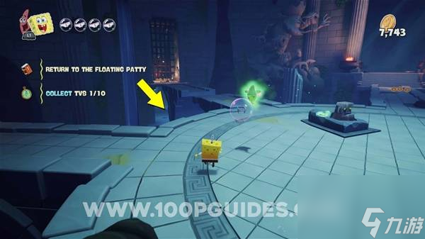 亚特兰蒂斯城——在关卡起点附近,你需要把灯笼扔过空隙对准目标,才能让气球显现出来。完成后,跳到灯笼上再拿一次。紧接着进入下一个房间,用灯笼从左边的洞口进入,找到电视。