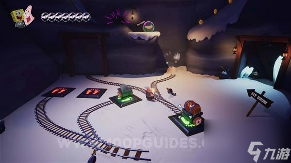 水母田——在爬山的前半段,你会看到左侧矿井入口。进去用爆炸车打开通道。在下一个房间,跳到顶部区域,用灯笼揭示电视所在的房间。