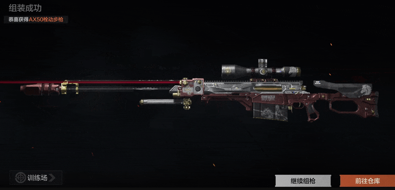检视时,将手中的AX50举至眼前细细品味,随后利落地拉栓上膛,与这位可靠的战斗伙伴一同冲锋陷阵!
