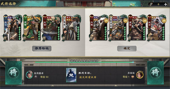 具体使用时间是在进行武将选择的时候,选人界面会从大家自身的武将库里随机抽出四名武将,如果其中有大家不满意的,就可以用换将令进行替换。在这个界面还可以查看自己和队友的选人界面,点击队友武将还可以推荐。