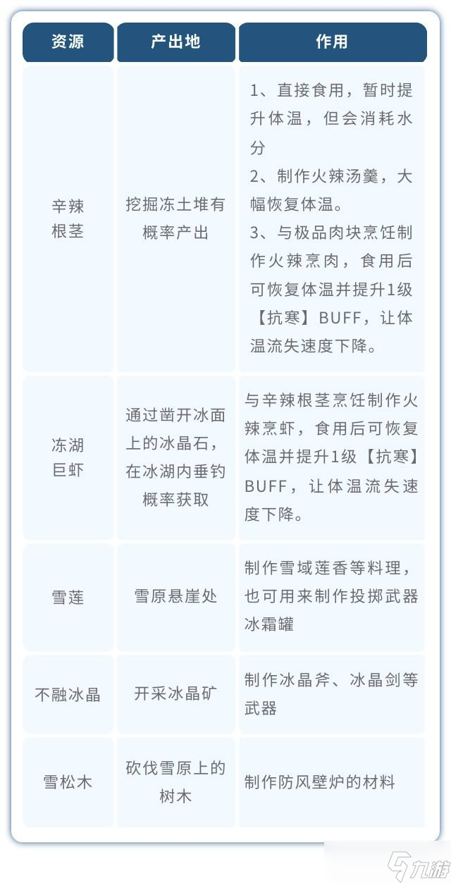 注意点:低温区域内燃料的消耗速度会大幅加快,燃料在雪原地区较难获取,取暖后记得熄灭篝火哦!