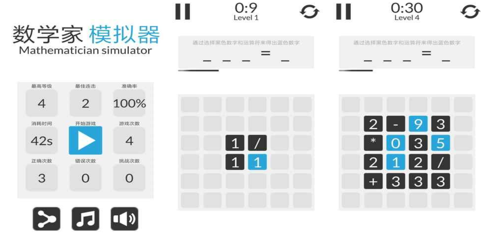 该游戏主打数学运算能力训练,玩法围绕两种颜色的元素展开:黑色数字与符号用于构建算式,目标是得出指定的蓝色结果数字。采用闯关形式推进,初期关卡提供的数字数量与需求匹配,随着进度深入,可选数字增多,解题路径更加多样,对心算速度和逻辑分析提出更高要求。每一关的操作时间与准确率都会被系统完整记录,方便玩家追踪自身成长轨迹,实现稳步提升。