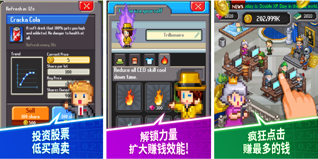 《点点亿万富翁》是一款像素风格的投资模拟手游,构建了一个充满商业竞争的虚拟世界。玩家将在复古像素画面中展开资本运作,通过点击快速积累资金,并参与股票交易系统实现资产翻倍。随着财富增长,可解锁豪华住宅、名车等装饰性物品,满足对富豪生活的想象。游戏将怀旧视觉与现代投资机制融合,打造沉浸式经商体验。