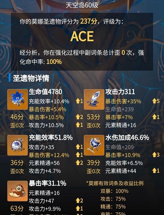 五个主词条顺序是生命-攻击-充能-水元素伤害-暴击率。副词条优先暴击率>暴击伤害>元素充能≥攻击,其他副词条不推荐。