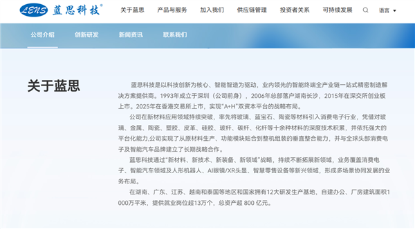 据了解,蓝思科技1993年成立于深圳(公司前身),2006年总部落户湖南长沙,2015年在深交所创业板上市,2025年在香港交易所上市。