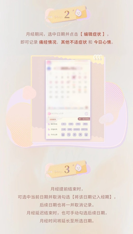 3.月经提前结束或延迟结束时,也可手动进行调整。