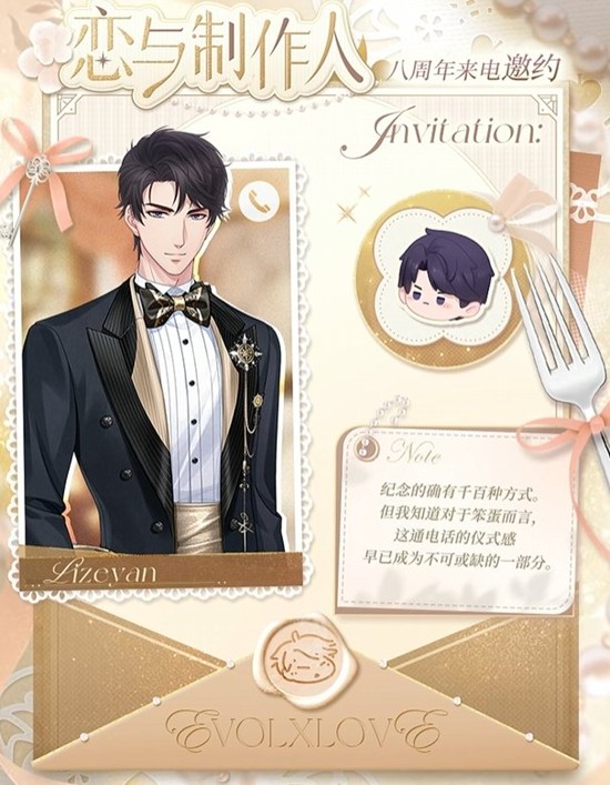 预约方式:登录游戏,点击【精彩活动】--进入【璨夜织梦八周年来电邀约】活动,可自选一位角色,提前预约他的周年庆互动来电。