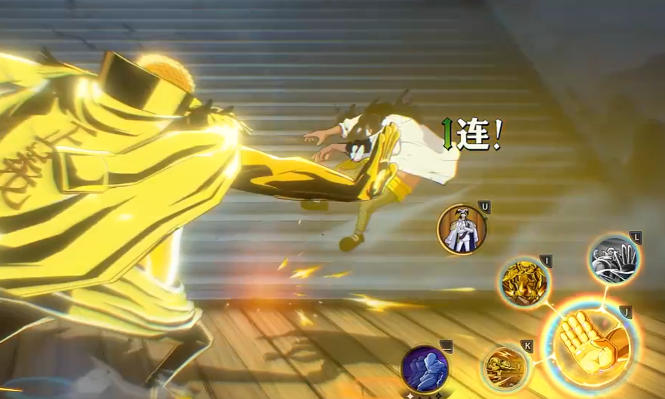 战国在常态下普攻有5段,1、2段是左右手的快速拳击,3段会大步撞飞对手,4段是左手下勾拳,第5段飞踢终结,实战长按普攻可进入快速连打模式,此时的攻击自带拳风,他的常态1技能短按会正步向前打出拳风,长按则是跳起后向斜下方打出。