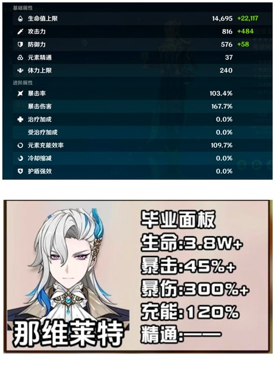 (从这里可以看出,其实那维莱特的暴击率不用堆我这么高,全心全意去堆暴击伤害就好了)