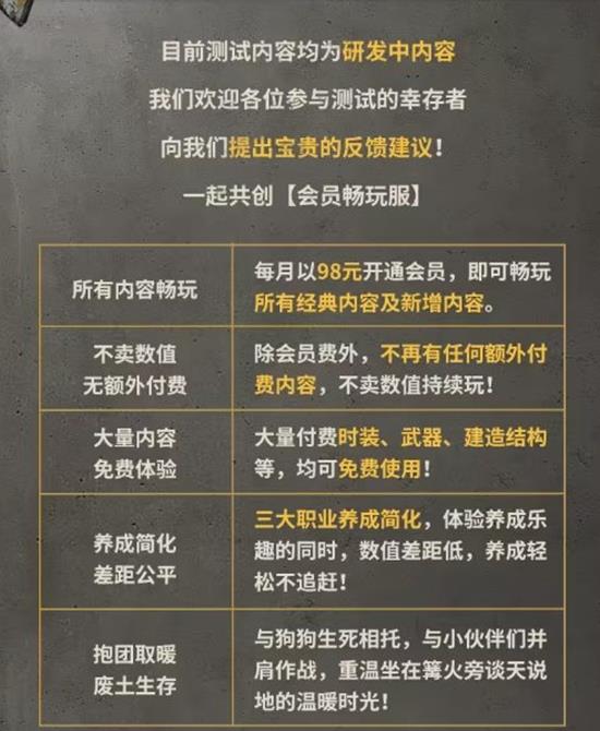《明日之后》共创特别季的第三阶段会员畅玩服测试报名已经开启。本次测试为付费删档测试,以98元开通会员,即可畅玩所有经典服及新增内容,且没有额外的付费内容。成功参与测试并开通会员的幸存者,可在服务器正式上线后获得1个月会员资格的返利。