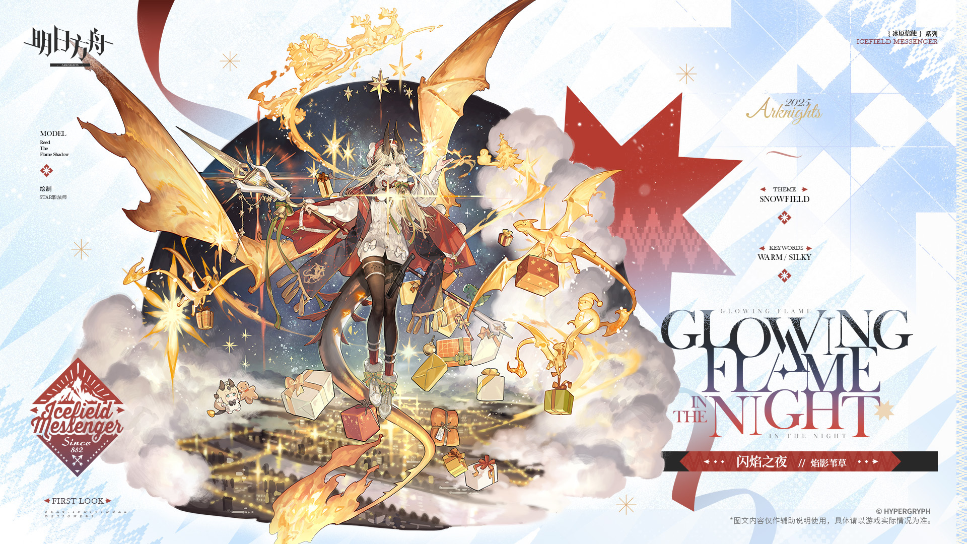 焰影苇草在节日外出时的穿着/闪焰之夜。穿上白色毛衣和厚实靴子,披起红色的披风,带着所有礼物与光亮,走进这片宁静的夜空。
