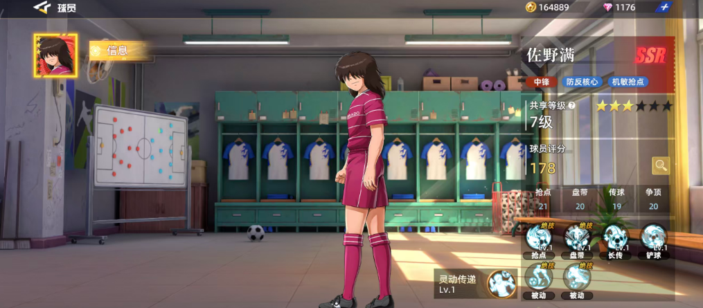 那么这里第三个为大家介绍的前锋就是佐野满,佐野满这个球员目前放在游戏当中进行使用的话,是固定放在中锋或者前锋位置上面使用的球员,那么使用佐野满带来加成的情况下,他可以带来的能力上面通过核心效果以及抢点的能力可以带来比较高的数值,当然他在红卡当中带来的评分没有前面两个球员那么高,但是他在同类球员当中抢点的这个数值达到的比分是比较高的,而且他在这部分动作上面可以带来的优势也确实是有一定技术的,后期使用自身的技能效果可以带来的顺射技能可以根据抢点带来足够的加成,而且他在脱手率达到6.8%的加成之后,那么抢点成功的时候获取球权的一个几率就非常大了。