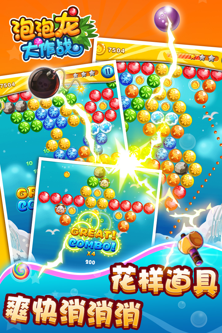 《浣熊泡泡龙》最大的亮点在于其角色化泡泡设定——每个颜色的泡泡都被赋予了特定的小动物形象,使整个游戏画面更具亲和力与趣味性。玩法上依旧遵循三消规则,但融合了更多创意元素。整体氛围温馨治愈,适合各年龄段玩家轻松上手,在轻松节奏中享受消除乐趣。