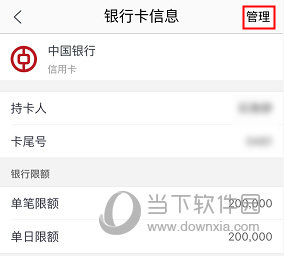 5、在“银行卡信息”界面中,点击右上角的“管理”;