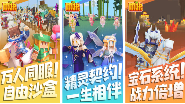 奶块是一款主打多人在线互动的高自由度沙盒手游,拥有大量活跃服务器,社交属性突出。游戏中引入契约系统,玩家可通过签订契约获得专属小精灵作为伙伴,增强陪伴感与策略性。除了基础的建造与探索外,还加入了家园经营、宝石强化等特色玩法,丰富了长期游玩的内容深度。虽然整体框架类似MC,但其强调玩家间协作与社区氛围,营造出比原版更为热闹的游戏环境。